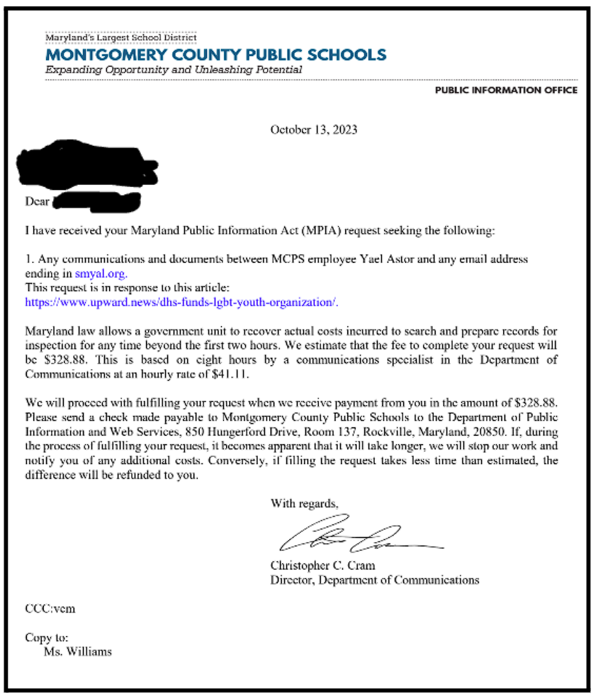 But we digress. With our hunch on a potential relationship between Ms. Astor and SMYAL, MPIA request #2 was submitted. Low and behold, there was information to be found! But it would cost us to be given it.