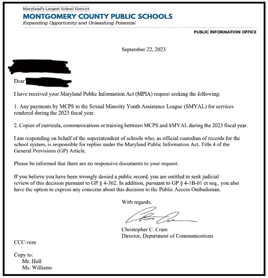 P.S.: If you’re able to donate to our FOIA Fund, every gift – no matter the amount – makes a difference, and your financial support is greatly appreciated. Together, we will bring transparency, academic excellence, and common sense back to MCPS. CLICK HERE TO DONATE TODAY.