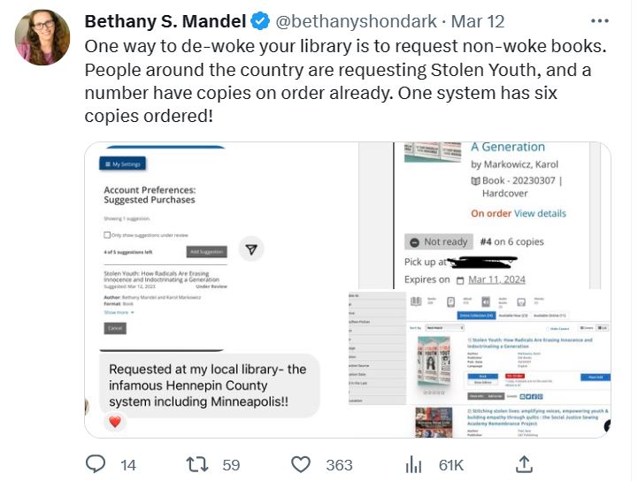 Back to Bethany’s book. Apparently, the book is being accepted into library systems across the country, with Bethany recently tweeting: