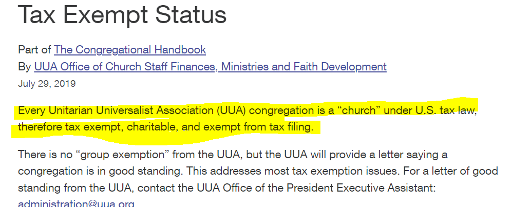 This is wholly run by the Unitarian Universalist Congregation of Rockville. This ‘congregation’ appears to be under the Unitarian Universalist Association, which does describe itself as a church per this post in 2019 on their own website. Screen shot is below: