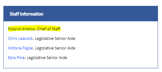 After being chief of staff for Navarro, who was thankfully and finally term-limited last year, it appears Mr. Ikheloa then stuck around some more, and is now the chief of staff for councilmember Sayles.  Do we need term limits on county “chiefs of staff” too?