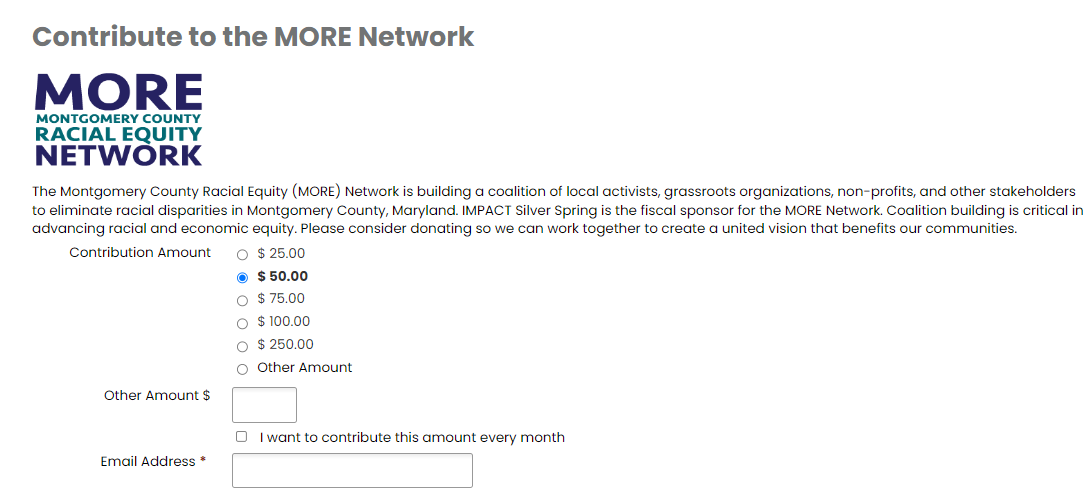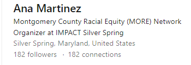 Councilmember Kristin Mink’s noted ‘Senior Legislative Aid’ (and lead for the HHS Committee on the County Council) along with her top aid for ‘residential tenant issues & housing code enforcement’ (per CM Mink’s own contact page) appears to still be involved with something called the ‘Montgomery County Racial Network’ (MORE), itself a “coalition of local activists, grassroots organizations, non-profits, and other stakeholders” that is “fiscally sponsored” by IMPACT Silver Spring.