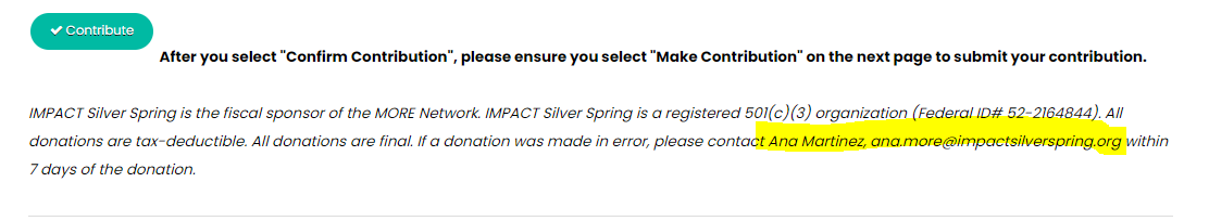 It could just be an old donation page that needs to be taken down, but this link implies it is still active.  Screenshots are below and were taken this March, 2023.  Is Ana Martinez still working at MORE as well?