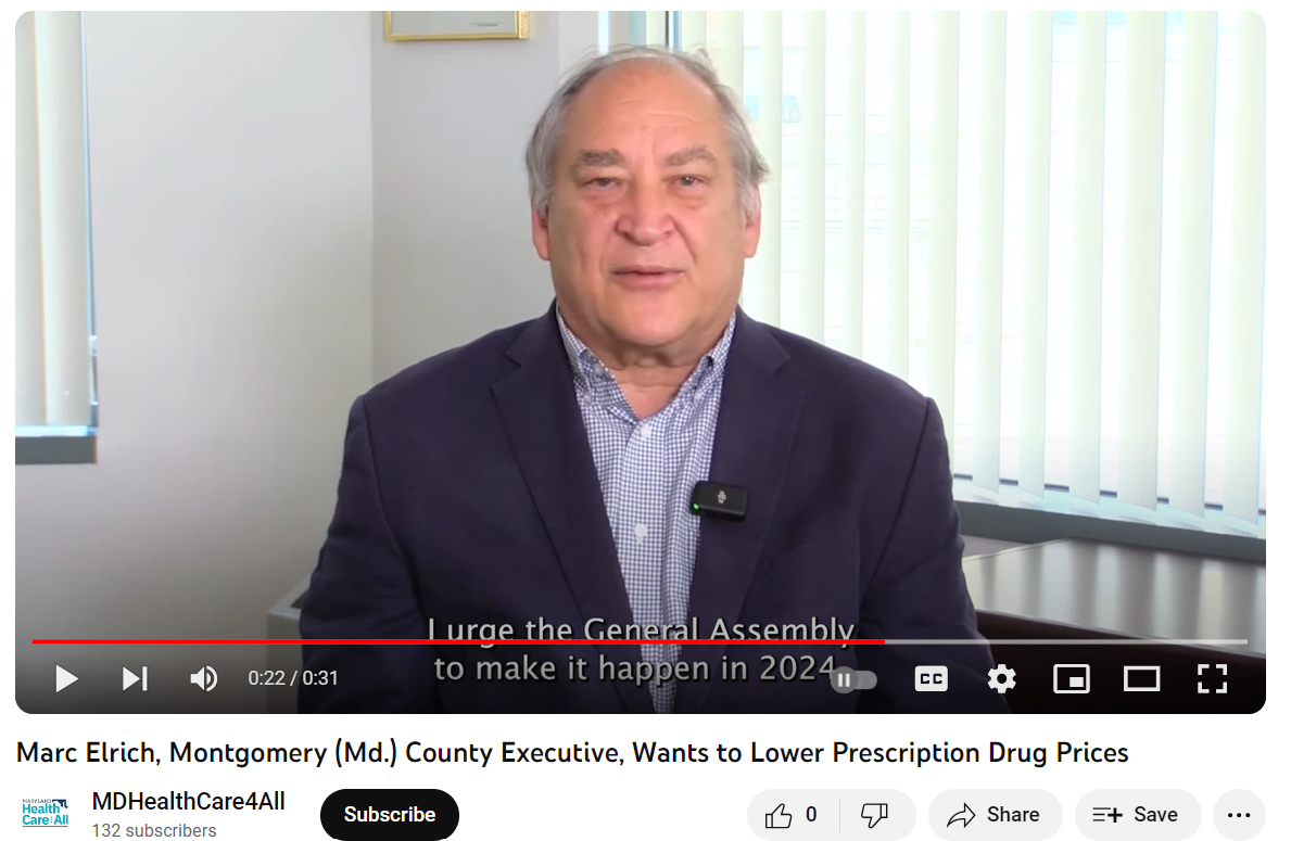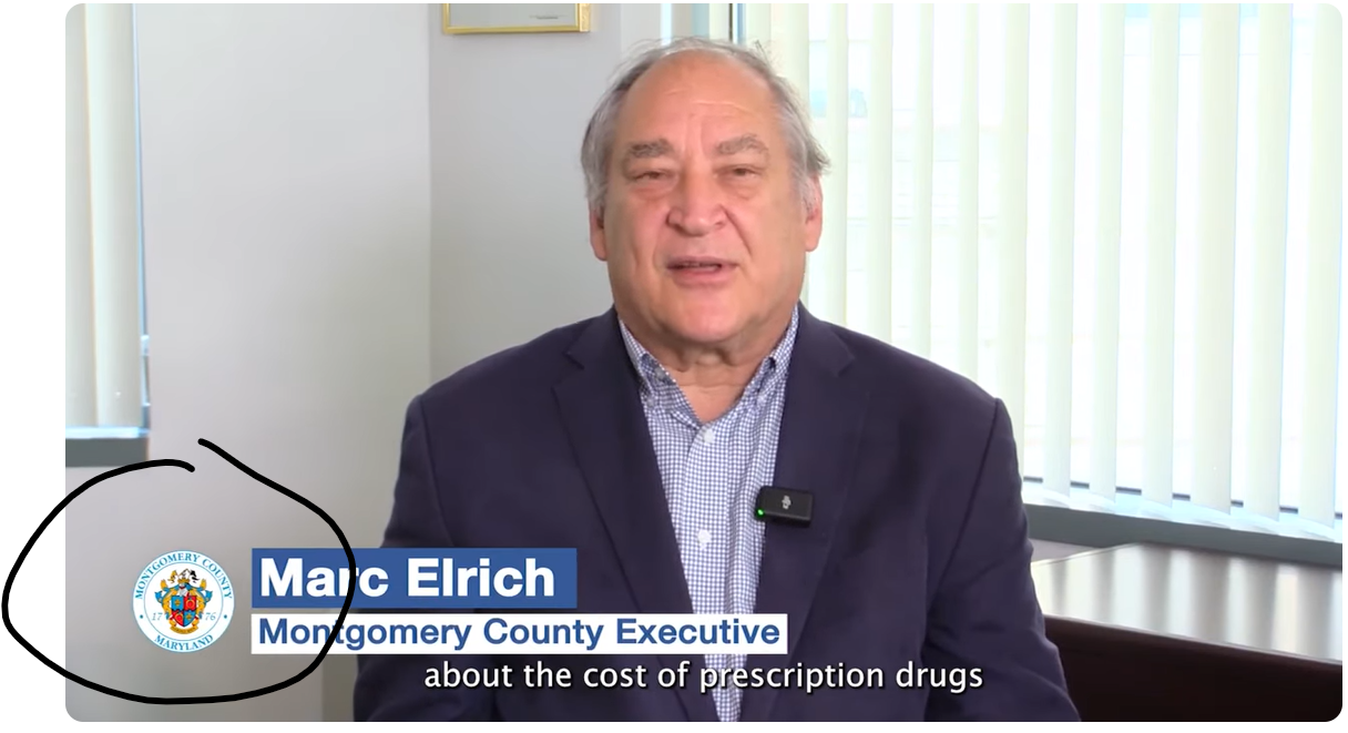 But this 31 second video featuring Elrich is actually an ad / issue advocacy (bordering on grassroots lobbying plea) promotion for future legislation in Annapolis, MD that he [Elrich] says will “lower prescription drug costs”. No specifics are given. No specific legislation is named (probably for legal reasons). Being that Elrich is a faux-socialist, this “lower cost” he claims to support will no doubt come through heavy-handed price controls and drug shortage-inducing public policy that won’t work very well for the middle class or working class, but will make a few insider Annapolis lobbyists very wealthy.
