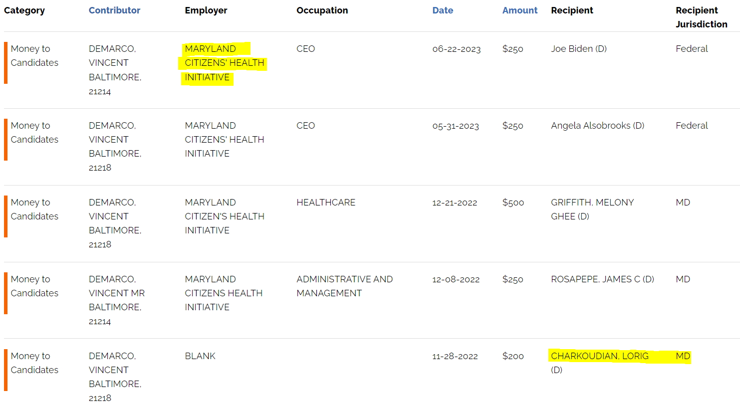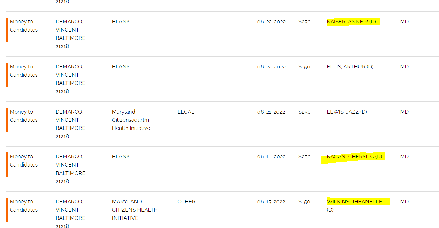 Vincent DeMarco made over $130,000 in salary in 2021 (again, per this non-profit’s tax form 990), and this was paid for about an average of 30 hours worth of work, per week. He was likely well compensated by “The Maryland Citizens’ Health Initiative, Inc.: a “sister organization” of the aforementioned “Education Fund”.