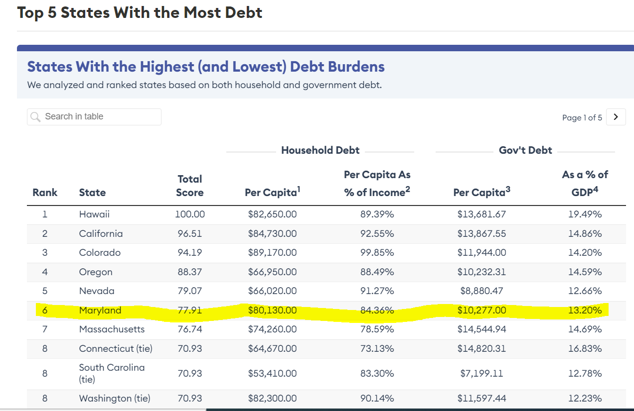 Anyways, here is the screen cap of the chart produced by Forbes Advisor, where we see Maryland once again trying to chase indebted California, its “policy and tax-and-spend big brother”:
