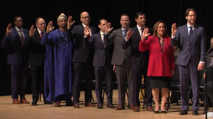The date is December 3, 2018. The inauguration ceremony for the new County Council and County Executive is under way. Among the honorees is new council member Will Jawando wearing a West African boubou and kufi.