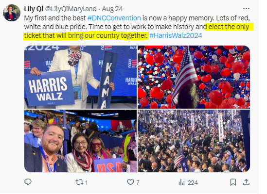 Moving on, here is a DNC take from state delegate Lily Qi, generally a cautious, seasoned local politician:
