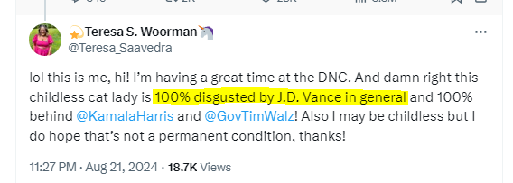 Ah yes. “Elect the only ticket that will bring the country together.” How will this ticket bring the country together? The delegate doesn’t tell us. All we know from this statement is that if you’re against Harris-Walz, you’re potentially against “bringing the country together.” But not the other way around. See how it works? Just join the team and “unite”… or be a free thinker and “divide”.