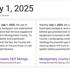 We are back to the gas-powered leaf blowers. Recall Bill 18-22, signed into law on October 9, 2023, prohibits the sale of gas-powered leaf blowers by July 1, 2024, and use of such equipment by July 1, 2025. Council Member Gabe Albornoz was the only dissenting vote at the time. Here we are, two weeks after the deadline for prohibiting the use of gas blowers, and there are discussions, and pending legislation, to add additional exemptions to the law.