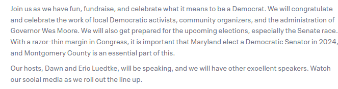 Per the EventBrite entry, the fundraiser is “celebrating what it means to be a Democrat”: