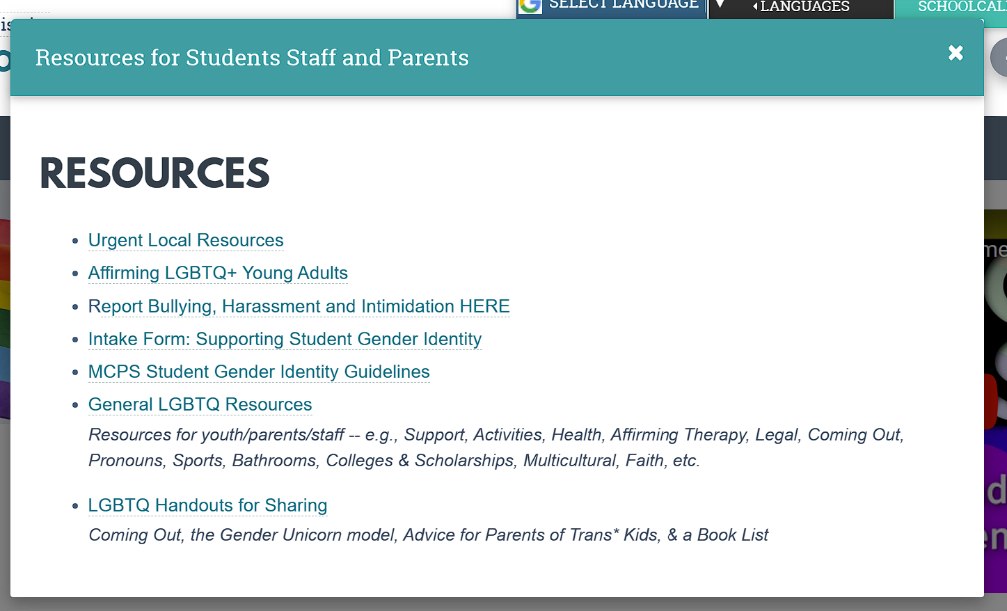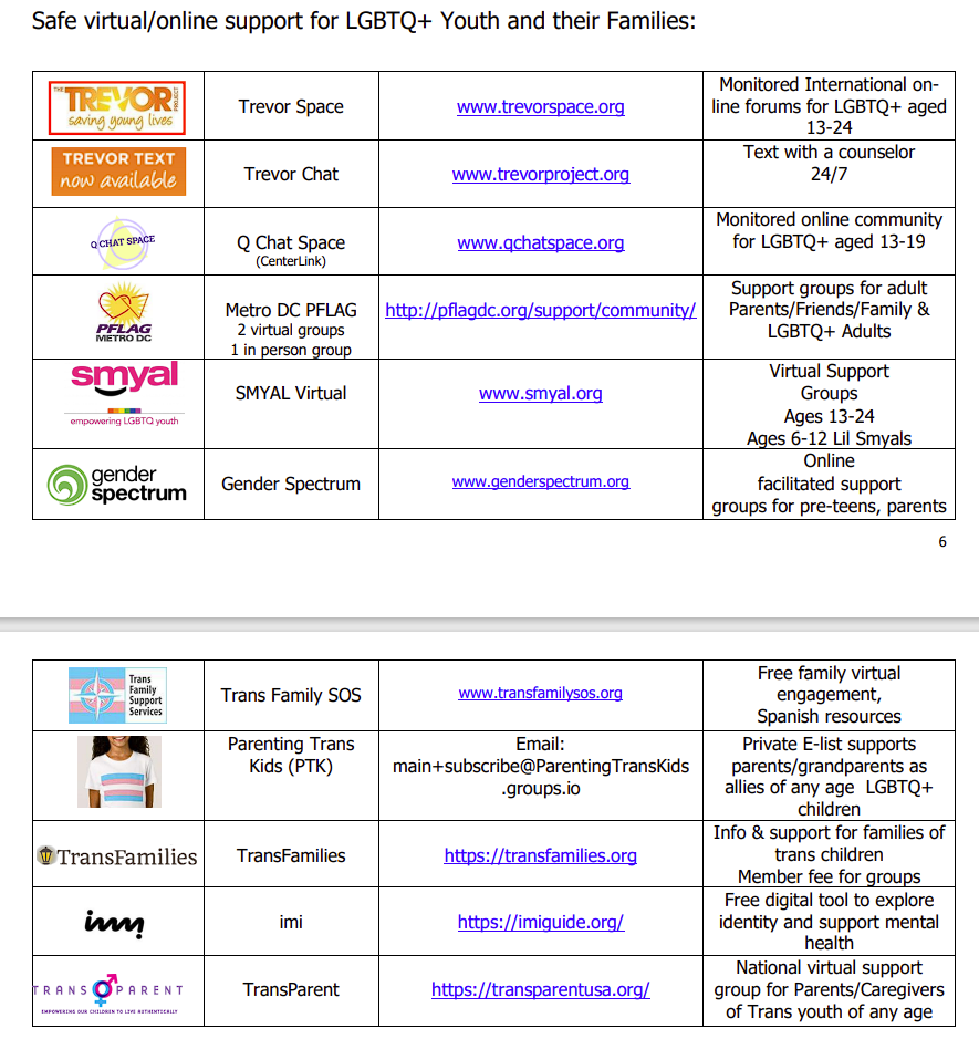 What is fascinating is that MCPS has stayed the course, building out additional resources for minors and their families to access. Most notable is the “LGBTQ Handouts for Sharing”.