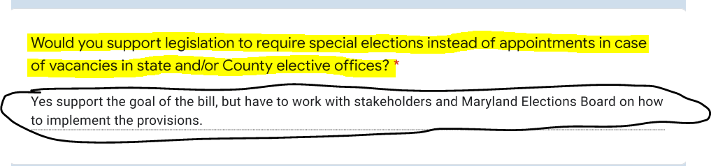Important to note – there was no such bill up for debate in 2022 and then-Senator Lee never even gave a half-hearted attempt to end the practice of Democrat Central Committee “appointments” to vacancies in Montgomery County or state elective offices. This undemocratic appointment practice goes on to this day.