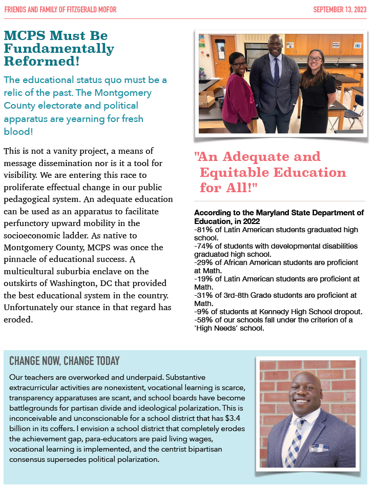 You can follow Fitzgerald on X (Twitter) @FitzgeraldMofor or via email at fitzgeraldmofor4mcpsboe@aol.com