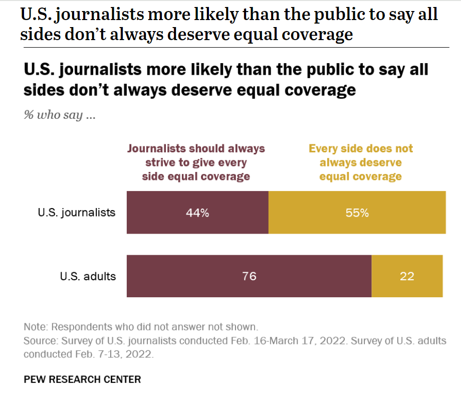 Nevertheless, journalists who oppose giving both sides of the story complain the most about misinformation. They are activists, not journalists. By not telling both sides, newspapers lose nearly half their audience. Getting back to that poll on all news media, 70% of Republicans trusted the media in 2016. By 2021, that fell to 35%.