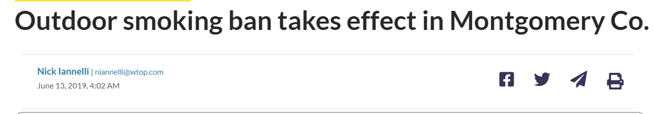 Yes, nanny-state, neurotic, top-down controlling MoCo, MD. Yes, the Montgomery County that banned outdoor smoking of cigarettes and cigars about four years ago, adding yet another regulation to bars and restaurants: