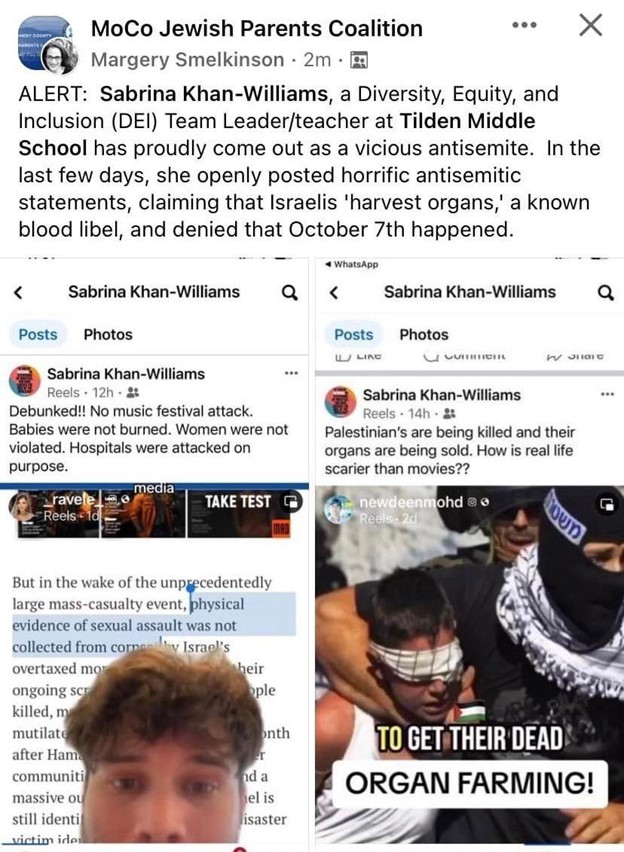 That’s bad. Here is where it gets worse. Tilden Middle School teacher Sabrina Khan-Williams was very recently posting comments reminiscent of Berlin 1930.