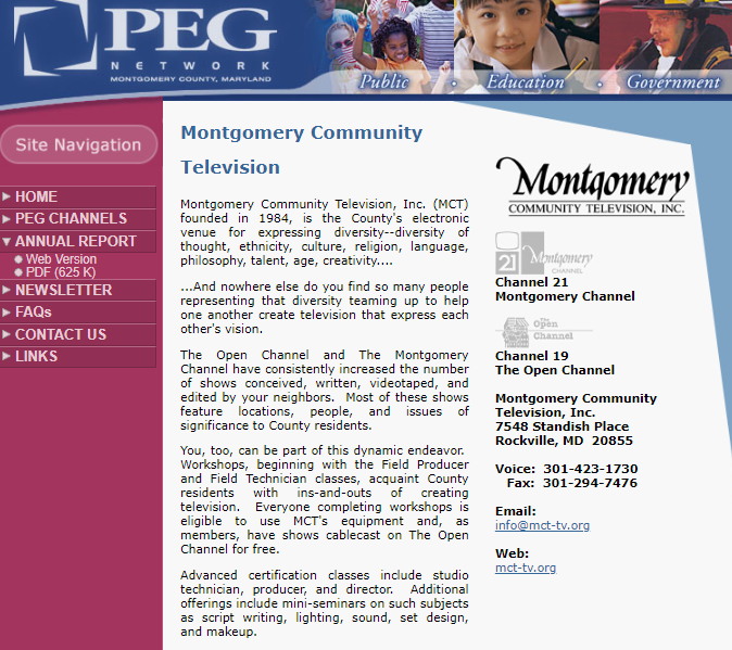 Interestingly enough, it sounds like Montgomery Community Television, Inc. (which runs / oversees MyMCM) was founded in 1984. When scouring the inter-webs, I found this interesting web page from 19+ years ago at montgomeryschoolsmd.org of all places. Screen shots below. Notice the emphasis on “expressing diversity–diversity of thought, ethnicity, culture, religion, language, philosophy, talent, age, creativity….…And nowhere else do you find so many people representing that diversity teaming up to help one another create television that express each other’s vision.”