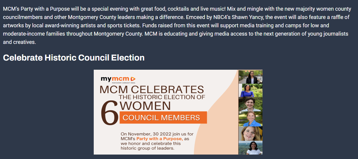 Anyways, I digress. Today’s MyMCM says it “is the only independent, nonprofit organization providing access to public media (public access television and broadband media) directly to Montgomery County’s over one million residents as well as the resident non-profit organizations, associations and businesses.”