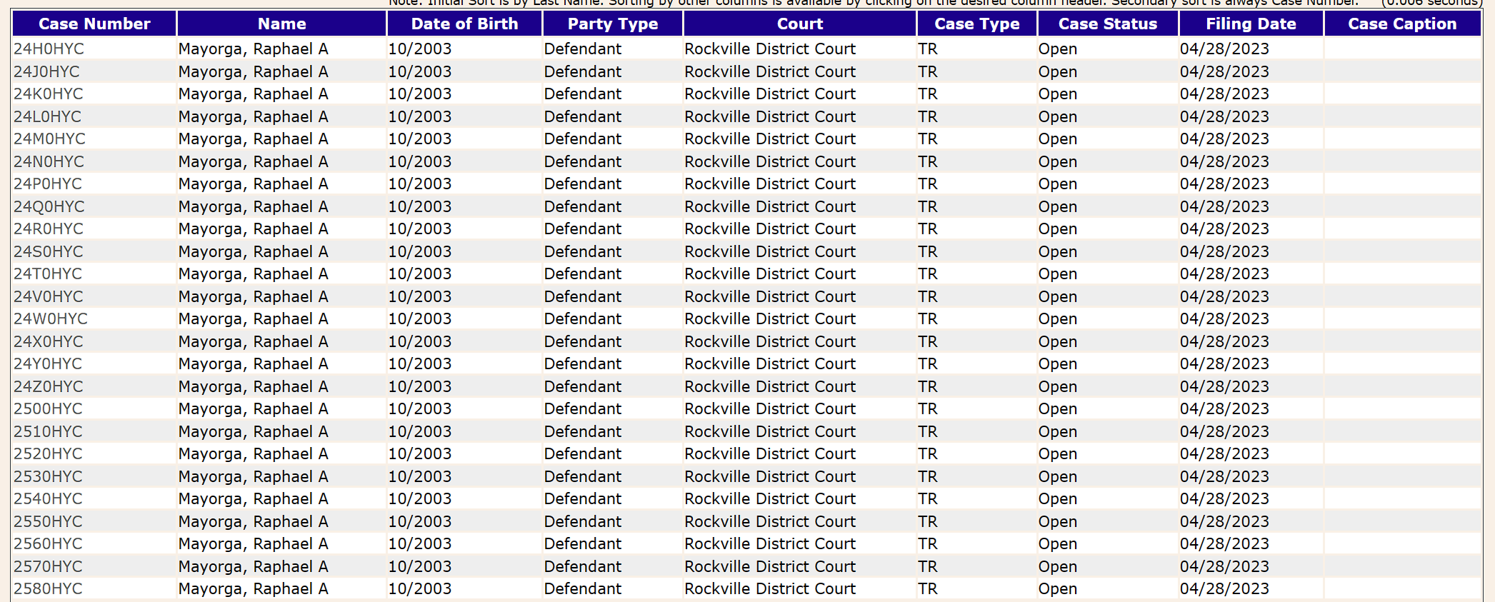 In searching CaseSearch, Raphael has over 230 entries, with a majority being traffic violations (several are related to theft).