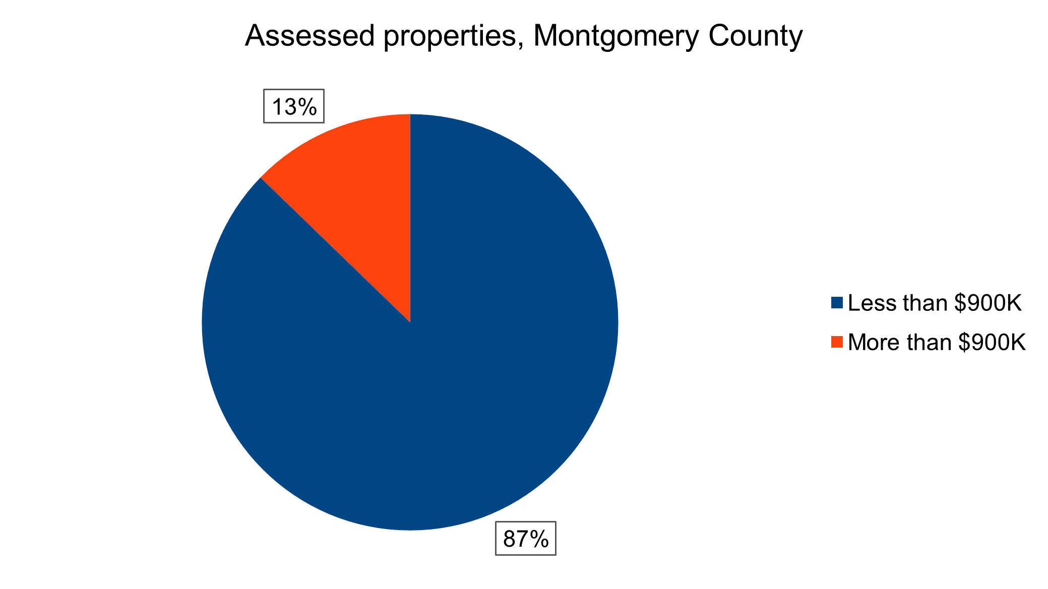 The State of Maryland has a database listing every single property in the state and its assessed value. For Montgomery County, that database shows that there are 351,976 properties. Of those 307,086 (!) of them are assessed at $900,000 or less.