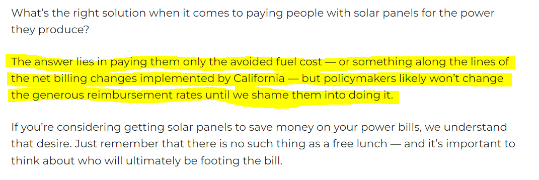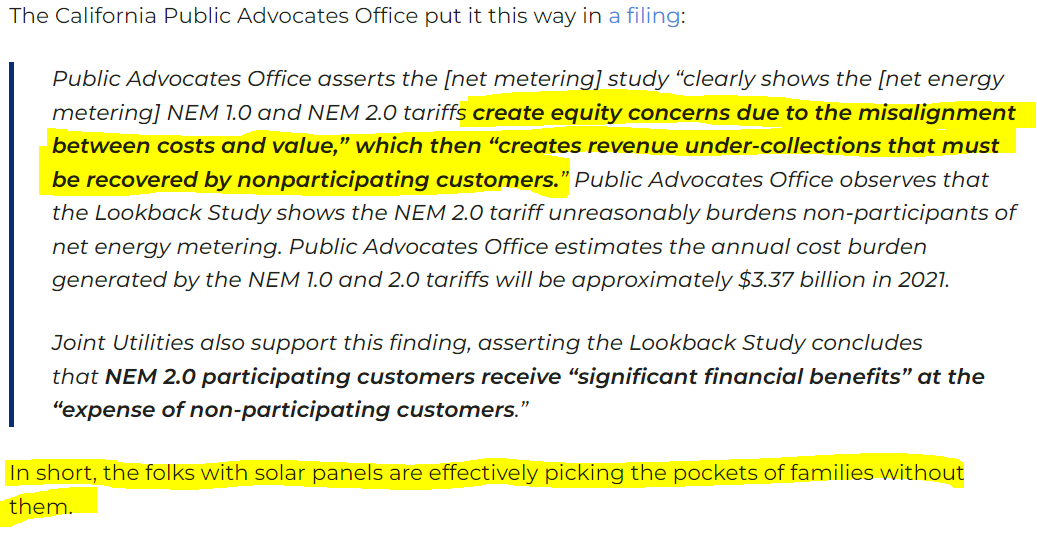 Not even the California Public Advocates Office (which one could safely assume shares much ideology in common with Marc Elrich on topics including climate change, income inequality, etc) could spin, lie or fudge the basic facts of retail-cost “net metering (NEM 1.0)” in Cali: