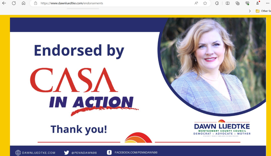 Despite issuing public statements, none of these endorsed candidates have publicly come out and said that they no longer accept this endorsement and will not accept an endorsement in future years from CASA.  In fact, as of 11/8/23, those candidates that list their endorsements on their website still proudly display the CASA logo.